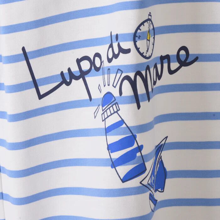 フロントに「SINA COVA」文字の刺繍とプリントを入れ、ポケットをニット素材でデザインしたボーダー半袖Tシャツです。